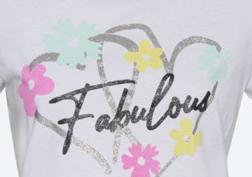 Style: LD TT-004 Fabric: 100% Cotton, Single Jersey. Embellishment: Pigment & Glitter Print